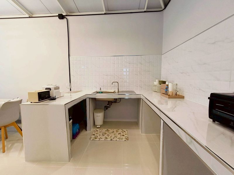 - ชั้นล่าง : 1 ห้องโถง 1 ห้องครัว